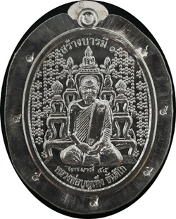 เนื้อเงินมีปีก มีจำนวน ๙ เหรียญ (หมายเลข ๑ – ๙) ด้านหน้าจะมีเลข ๙ ตรงไหล่บริเวณสังฆาฏิ บริเวณขอบเหรียญมีเลข ๙ จำนวน ๗ แห่ง |