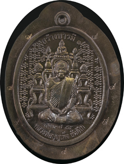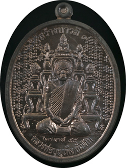 ๕. เนื้อนวโลหะไม่มีปีก มีจำนวน ๓๒ เหรียญ (หมายเลข ๓๑ – ๖๒) ด้านหลังมีโค้ดดอกบัวด้านซ้ายบนและโค้ดฉายา“ขันติโก” ด้านขวาบนเป็นหมายเลขของเหรียญตรงห่วงมีเลข๙