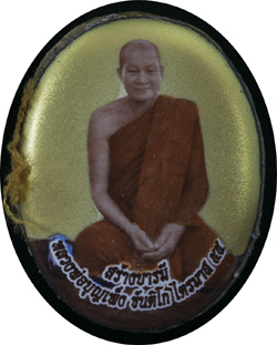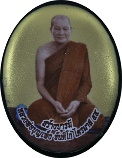 ๑๓. ล็อกเก็ตหลังแผ่นทองคำ มีจำนวน ๔ อัน ( หมายเลข ๗ – ๑๐ ) ด้านหน้า ฉากทอง ด้านหลังเป็นแผ่นทองคำ ตอกเลข ๙๙๙ ถัดลงมาเป็นโค้ดดอกบัว ๓ โค้ด ถัดลงมาเป็นหมายเลขกำกับ