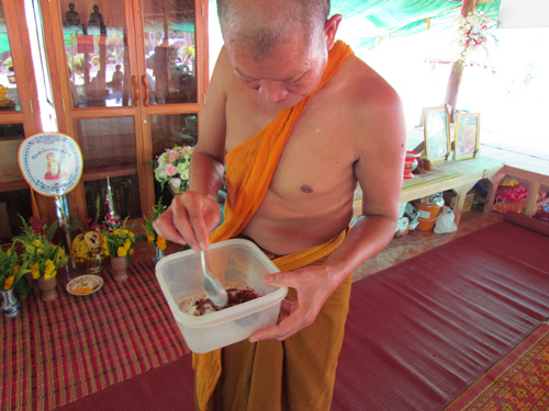 หลวงพ่อบุญเพ็ง ขันติโก ได้เมตตาอธิษฐานจิตก่อนนำมวลสารไปปิดหลังล็อกเก็ต